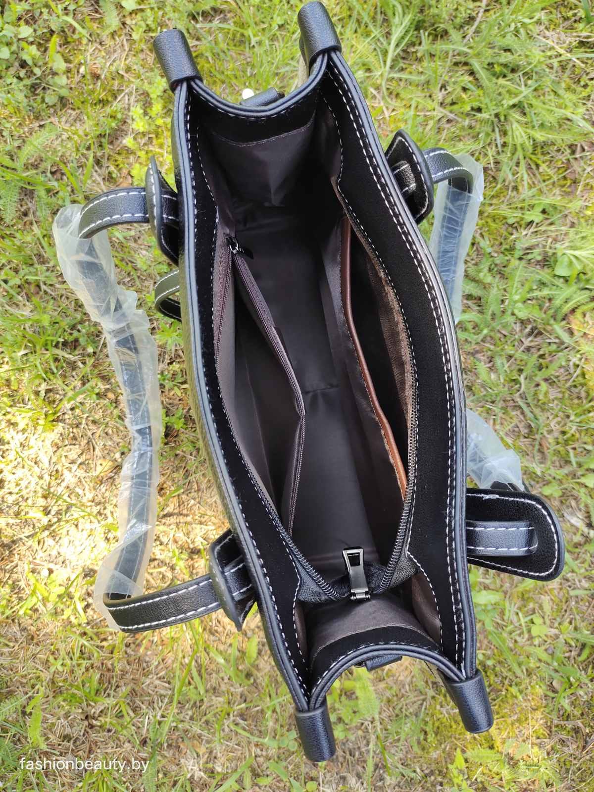Сумка закрывается на молнию. Внутреннее пространство дополнено карманом и отделением на молнии.