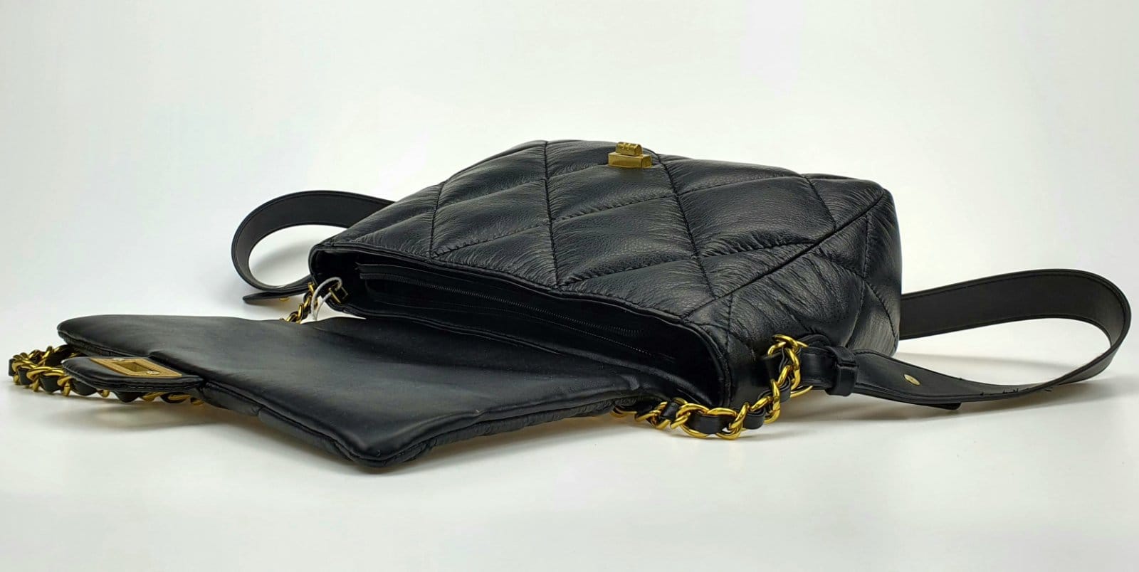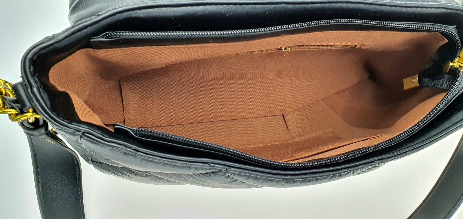 Клапан на поворотном замке. Сумка дополнительно закрывается на молнию. Внутри 1 отдел, кармашек на молнии, 1 открытый кармашек.