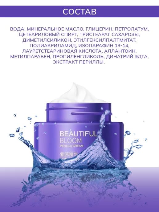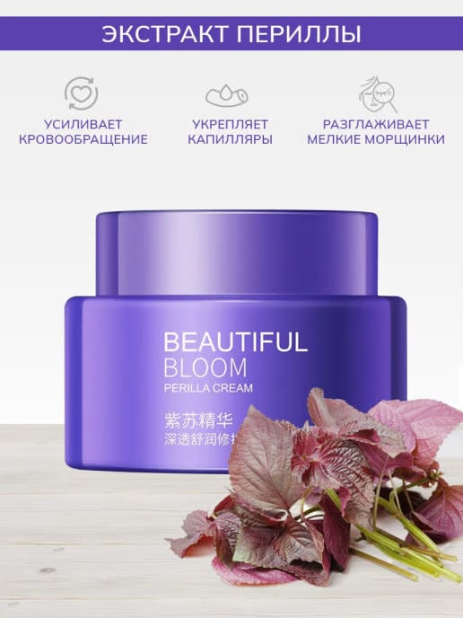 Увлажняющий омолаживающий крем для лица с экстрактом периллы и гиалуронатом натрия глубоко проникает в кожу, питает, поддерживает и защищает её.