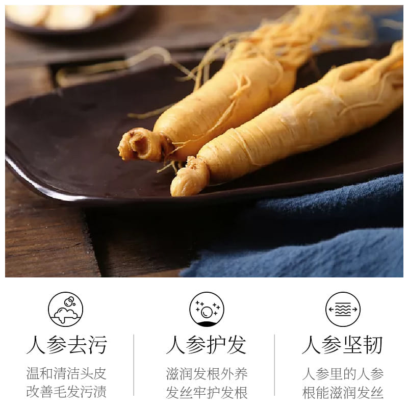 Восстанавливает повреждённые волосы, укрепляет от корней до кончиков. Женьшень оказывает тонизирующее действие, усиливает кровообращение, питает и укрепляет луковицы, предотвращает выпадение волос, стимулирует их рост. Защитная мембрана оберегает волосы от потери влаги, удерживая её внутри, сохраняет эластичность и гибкость волос. Оживляет цвет волос, избавит от тусклости, возвращает волосам здоровый привлекательный блеск. Очищает волосы и кожу головы от излишней жирности, придавая волосам свежесть и лёгкость, делая их мягкими шелковистыми и струящимися.